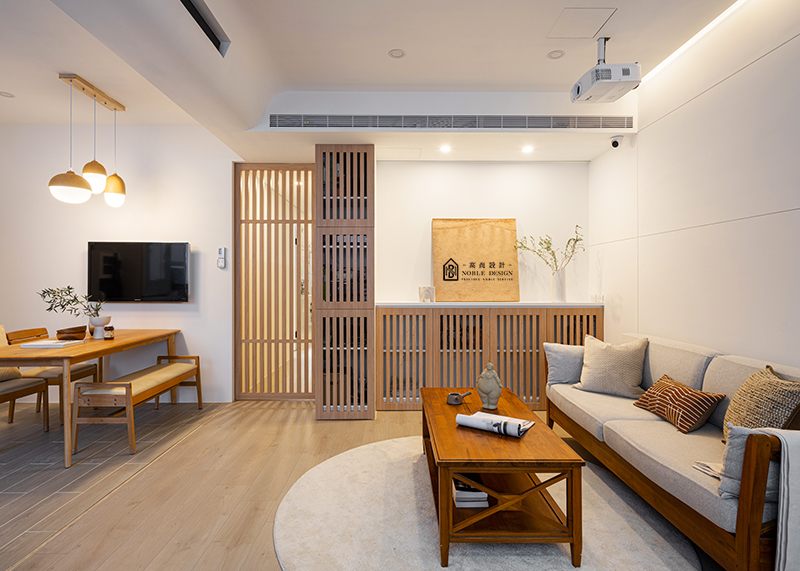 原木色家具與格柵,展現自然木質的溫暖與細膩
